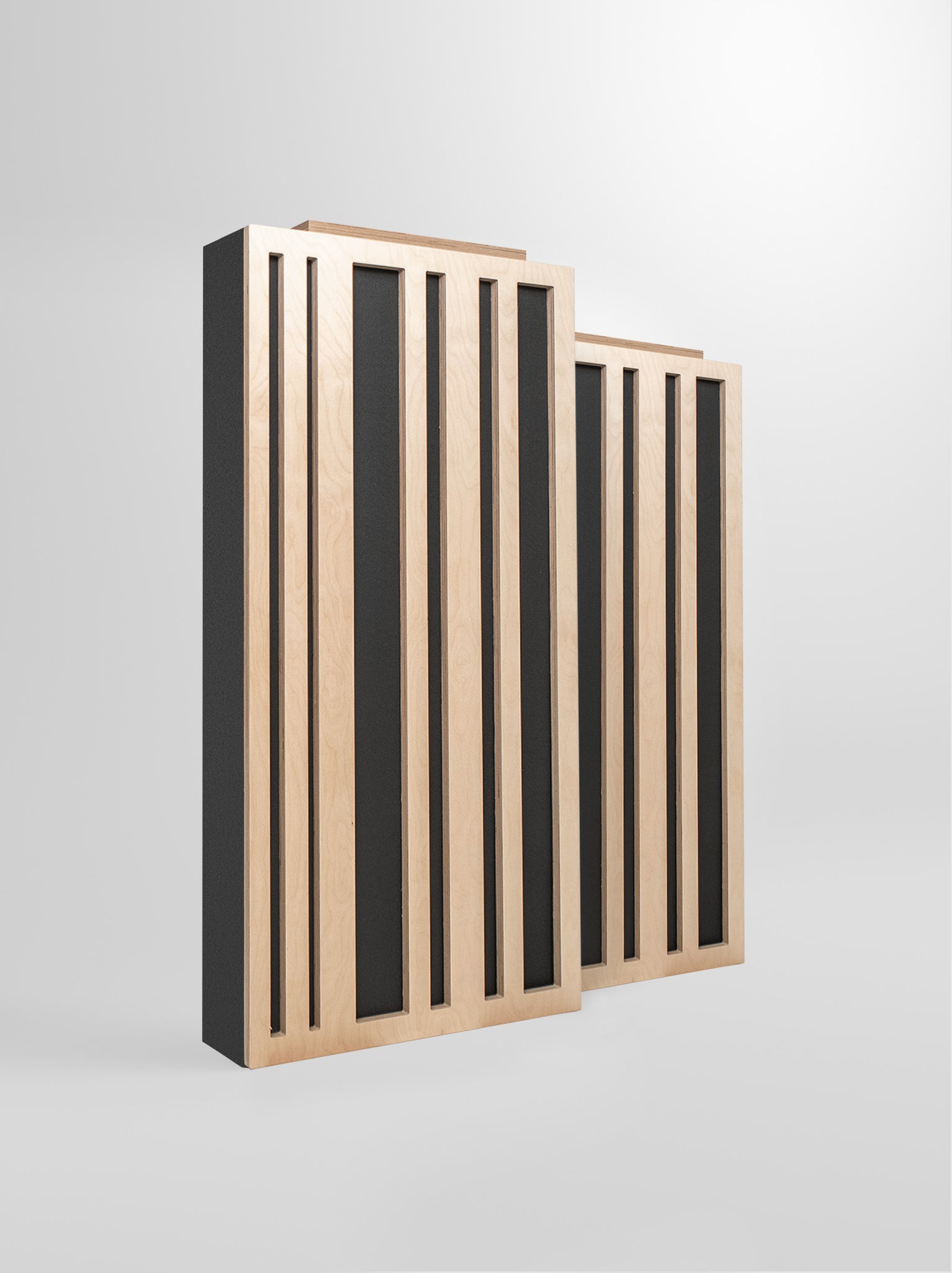 Note: The 2'x2' and 4'x2' are fully CNC-cut. The 6'x2' features CNC-cut end pieces with hand-placed slats, which creates a slightly different appearance while delivering identical acoustic performance.